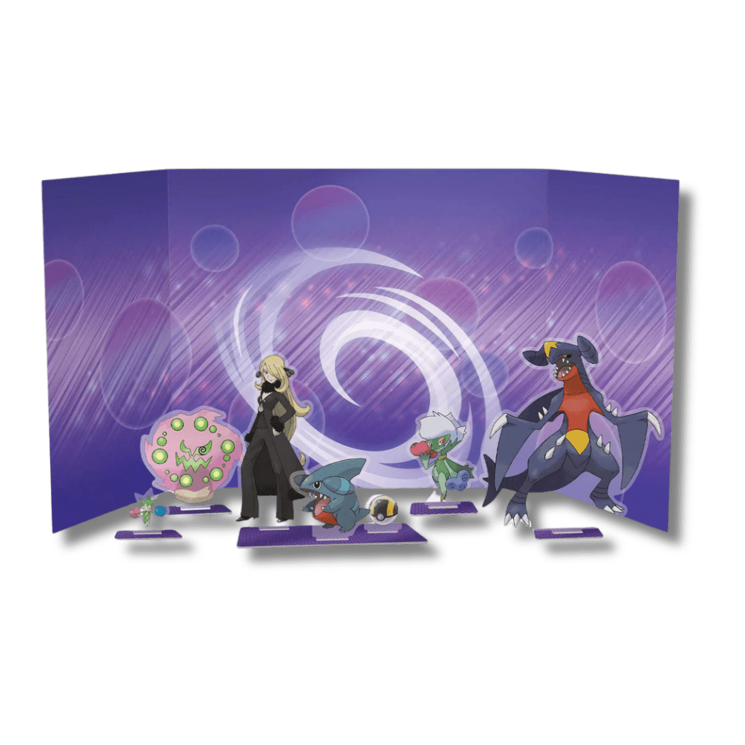 - 1 sheet of acrylic standees featuring Cynthia, Garchomp, and more